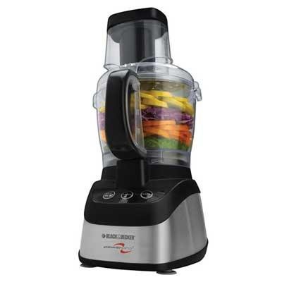 Black & Decker PowerPro 2-in-1 Food Processor & Blender... Power that gets the job done! From food processing to blending, the 600-watt motor lets you slice, chop, shred, grate, puree and blend all your foods with ease. Do more with the 10-cup capacity workbowl and the 6-cup blending jar as you prepare delicious meals and savory drinks! Stainless Steel Slice and Shredder Disk; Powerful 600-Watt Motor; Stainless Steel Chopping Blade; Dough Blade; 2 Speeds Plus Pulse; Wide-Mouth Feed Chute; Food Chute With Pusher; Non-Skid Suction Feet; Storage Lid; Safety Interlock System; Cord Wrap; Dishwasher-Safe Parts; 10-Cup (2365 ml) Workbowl; 6-Cup (1419 ml) Blender Jar; Smooth Control Panel.